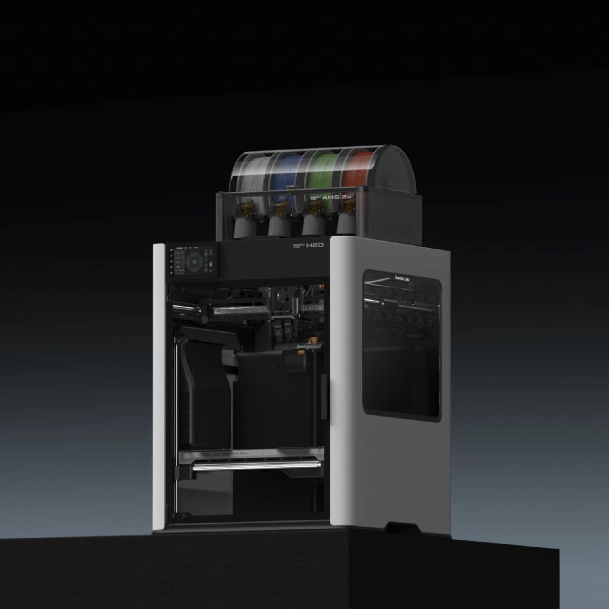 H2S的設計邏輯很純粹,單噴頭+自動供料+最大列印尺寸,同樣具備AMS自動換料系統,但其核心目的不是多色,而是自動進退料與續料功能。