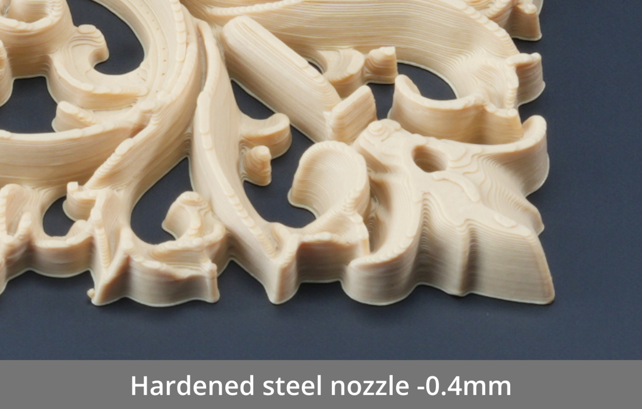 如此一來,列印高磨損性、高性能纖維強化 3D列印線材時,噴頭的使用壽命可延長 50%。