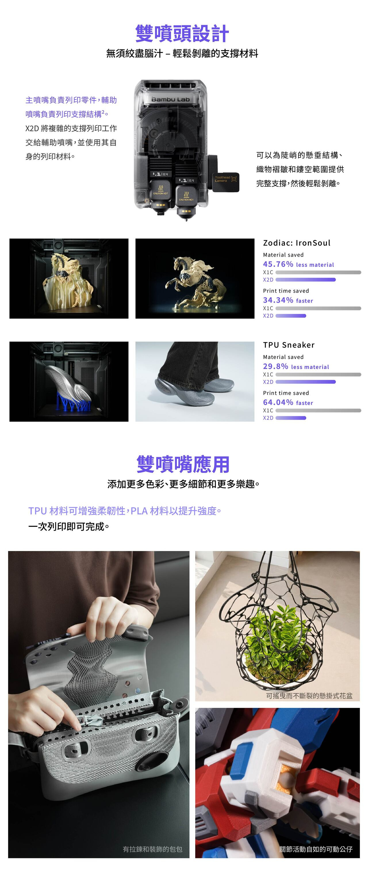 | 輔助熱端(請謹慎列印¹) | PLA Silk、PETG-CF、ASA-CF、PA6-CF、TPU(適用於AMS)、PA/PET支撐 |