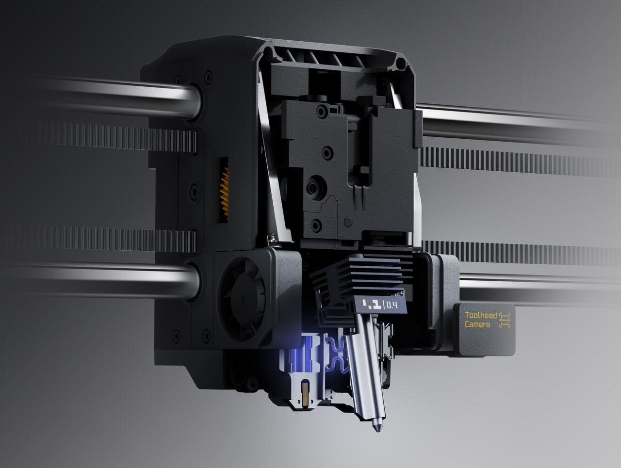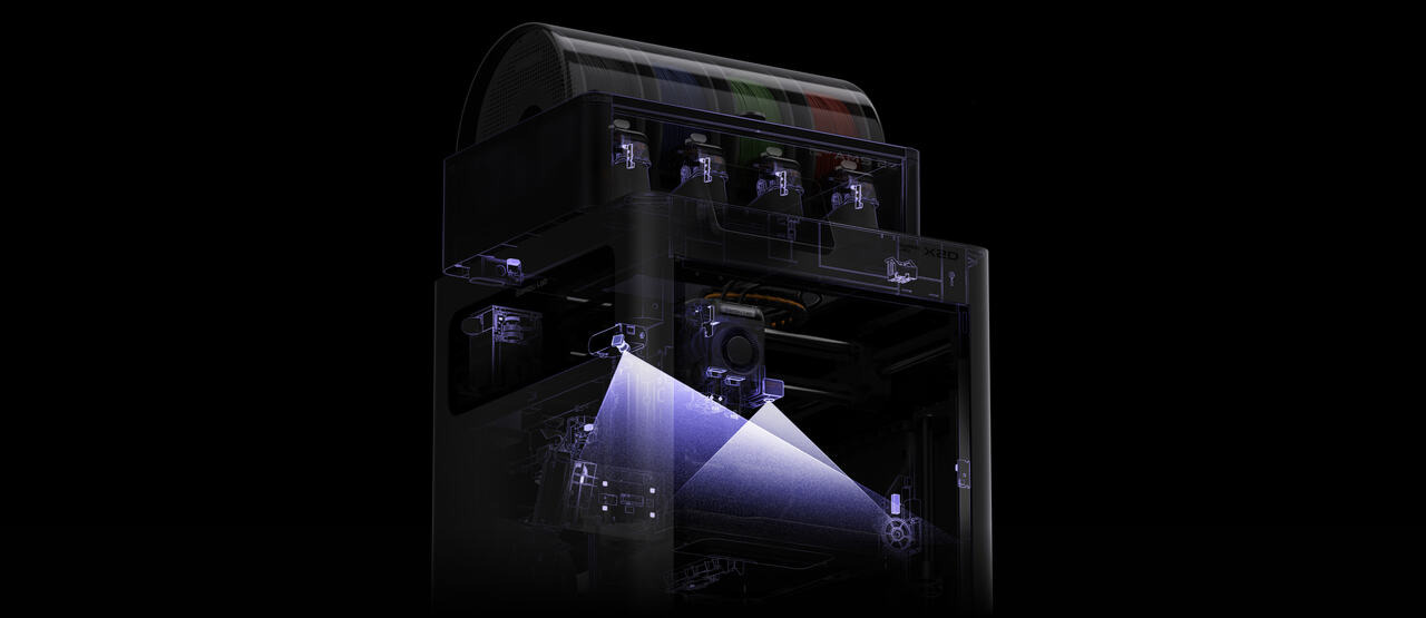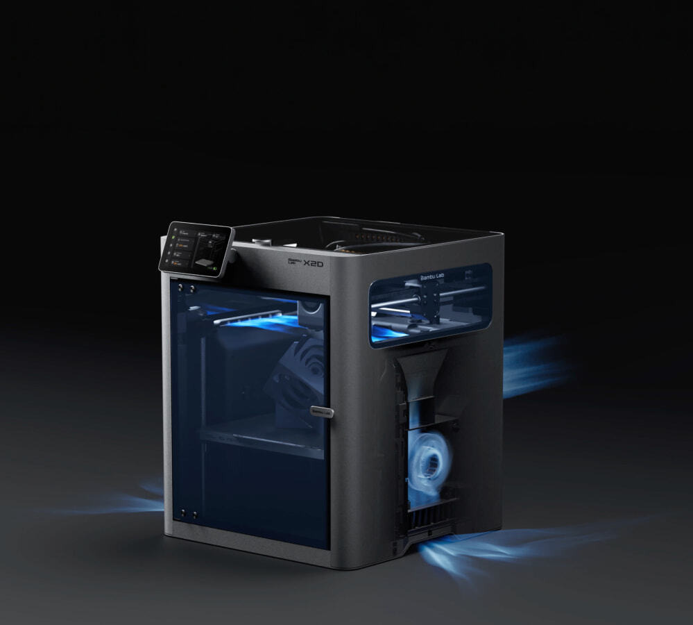 剛列印出的材料很軟,但X2D列印機左右兩側的雙進氣口能瞬間將冷空氣吹入列印艙體內,這種持續的空氣交換,能穩定每一層列印,尤其適用於PLA等低溫材料,在恰到好處的時機冷卻每一層材料。