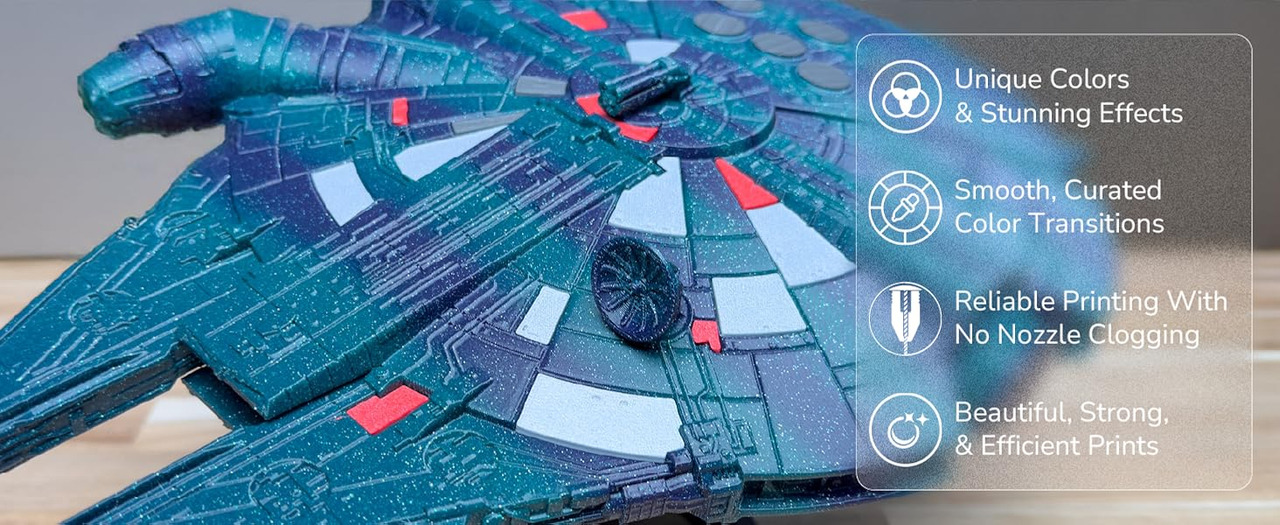 ◎ 大膽的宇宙銀河漸層:深邃的多色調漸變,呈現出豐富的太空靈感色調,為雕像、風景和裝飾列印作品帶來戲劇性的效果。